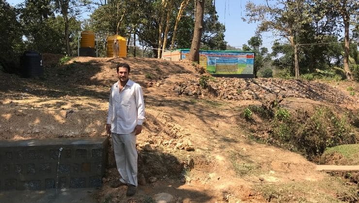 Miles standing next to the water distribution location in Nersa, India