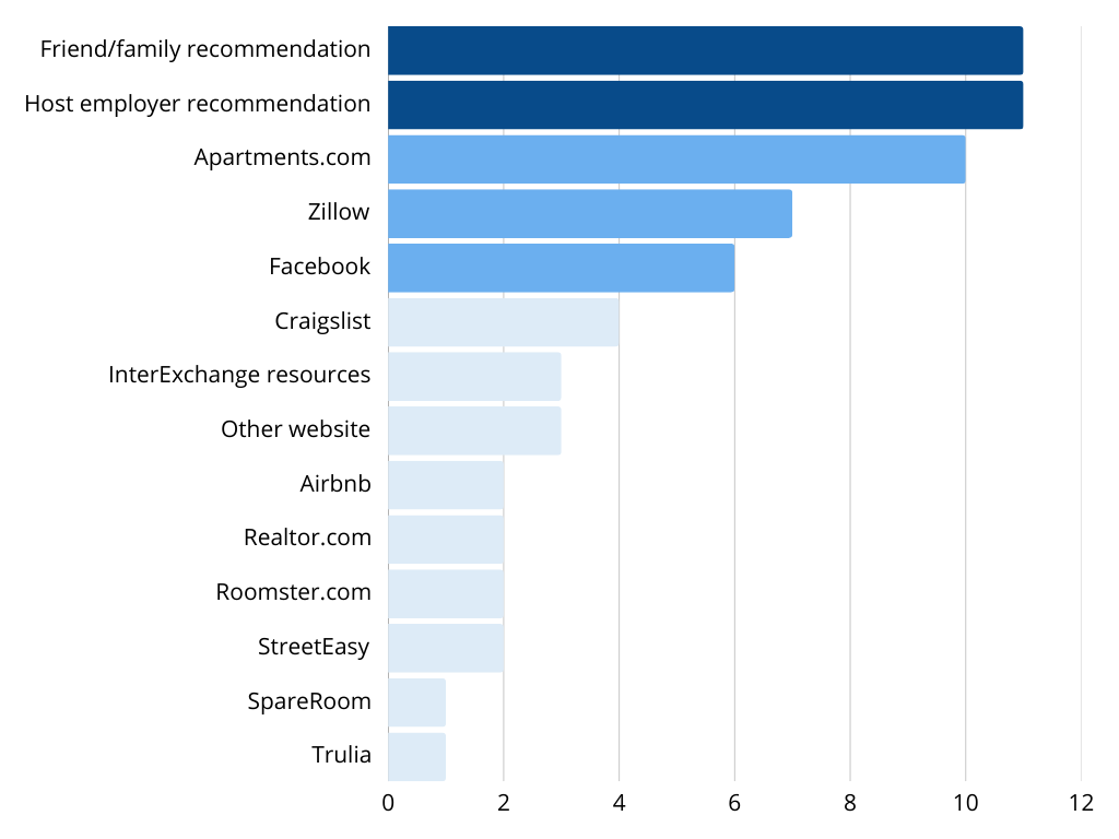 Finding suitable accommodation takes research. We asked our participants which resources they used to search for housing in the U.S. The most common response? They utilized their network! Of the respondents, 23% used a recommendation from their host employer or a family member or friend.