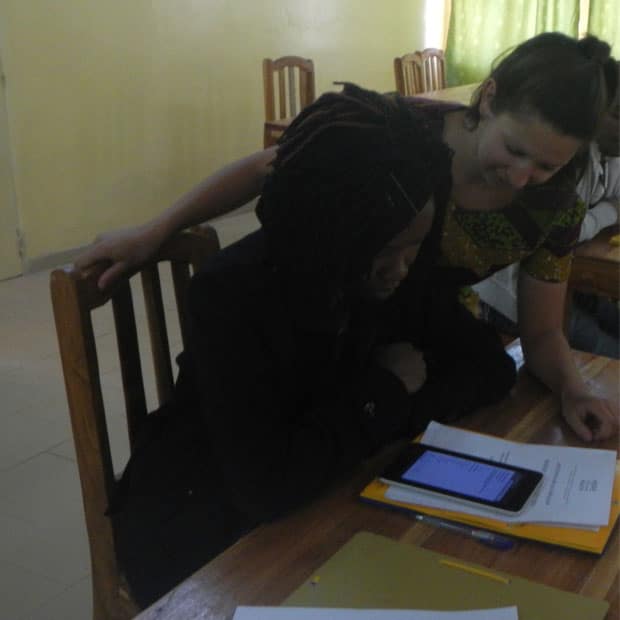 Me working with Rouki, one of our data collectors, during the new tablet training. Photo courtesy of Alicia