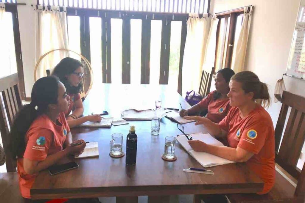 Meet the Trash Team! Counter-clockwise from lower-right: Trash Program Coordinator Rosa Bjork Halldorsdottir and Education Leader Putu Getha facing Youth Trash Champions yours truly and Dwi.